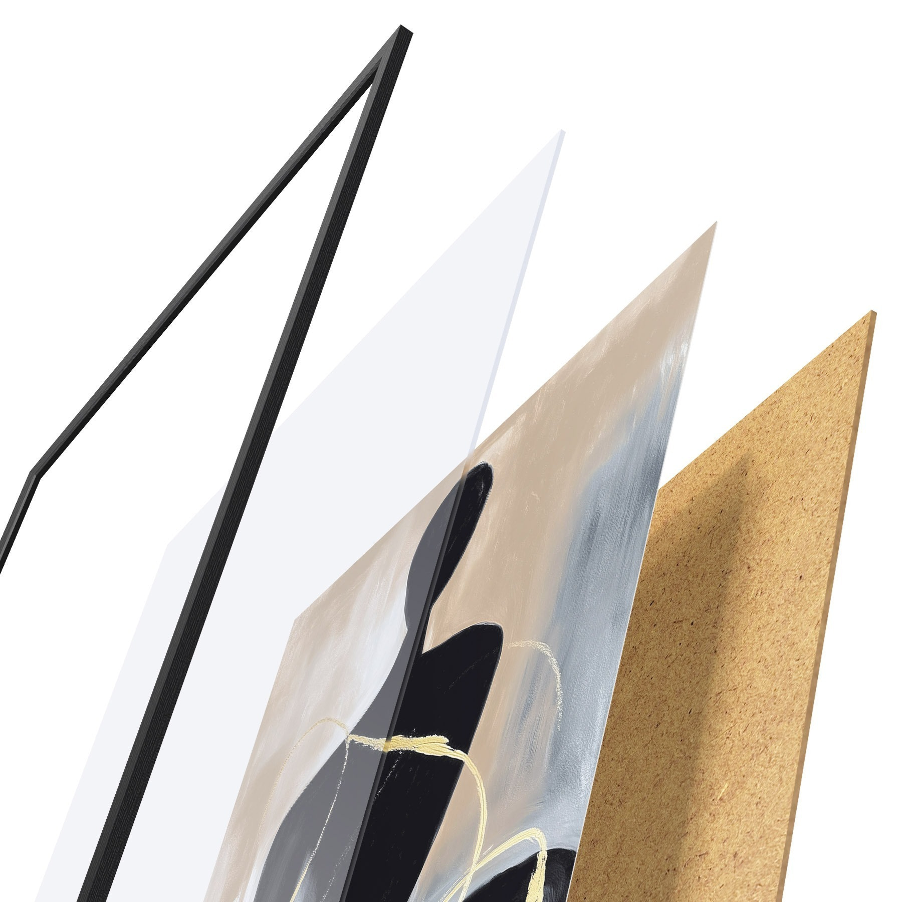 Plakatą sudaro rėmas, pleksiklas, atspausdintas vaizdas ir medžio drožlių plokštės pagrindas. Plakatą galima iš karto pakabinti ant sienos dėl kitoje pusėje esančių laikiklių.