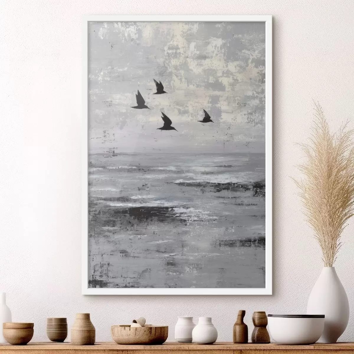 Plakatas Abstraktus peizažas su paukščiais f45988