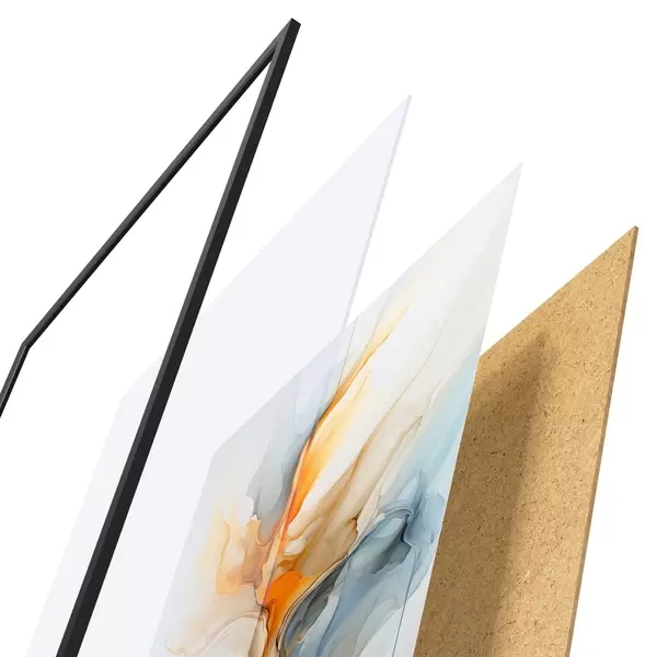 Plakatą sudaro rėmas, pleksiklas, atspausdintas vaizdas ir medžio drožlių plokštės pagrindas. Plakatą galima iš karto pakabinti ant sienos dėl kitoje pusėje esančių laikiklių.