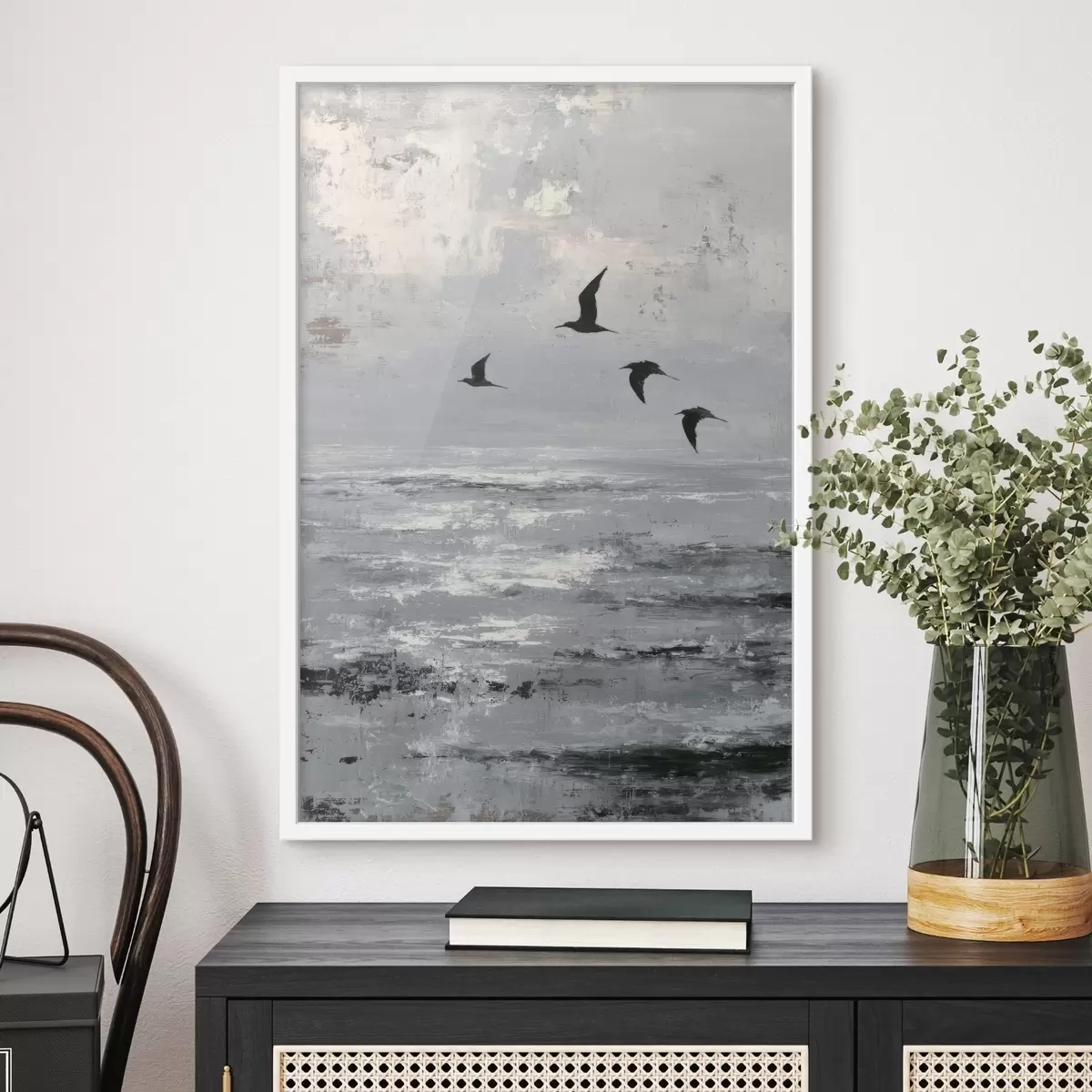 Plakatas Abstraktus peizažas su paukščiais f46004