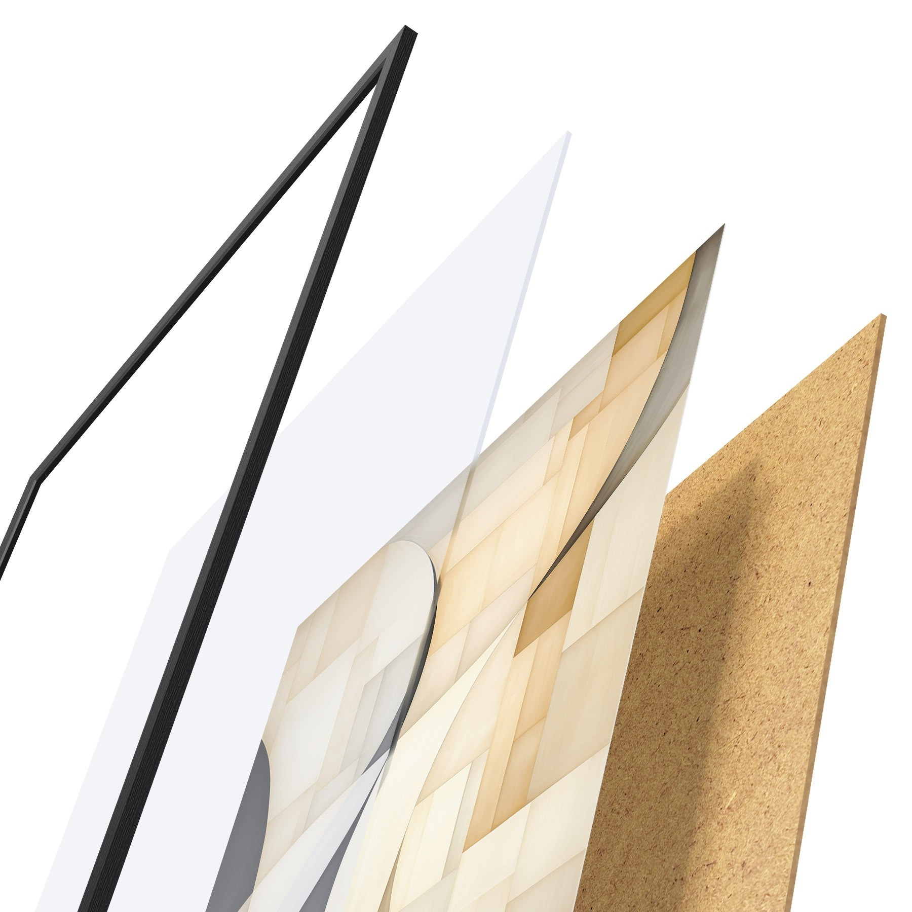 Plakatą sudaro rėmas, pleksiklas, atspausdintas vaizdas ir medžio drožlių plokštės pagrindas. Plakatą galima iš karto pakabinti ant sienos dėl kitoje pusėje esančių laikiklių.