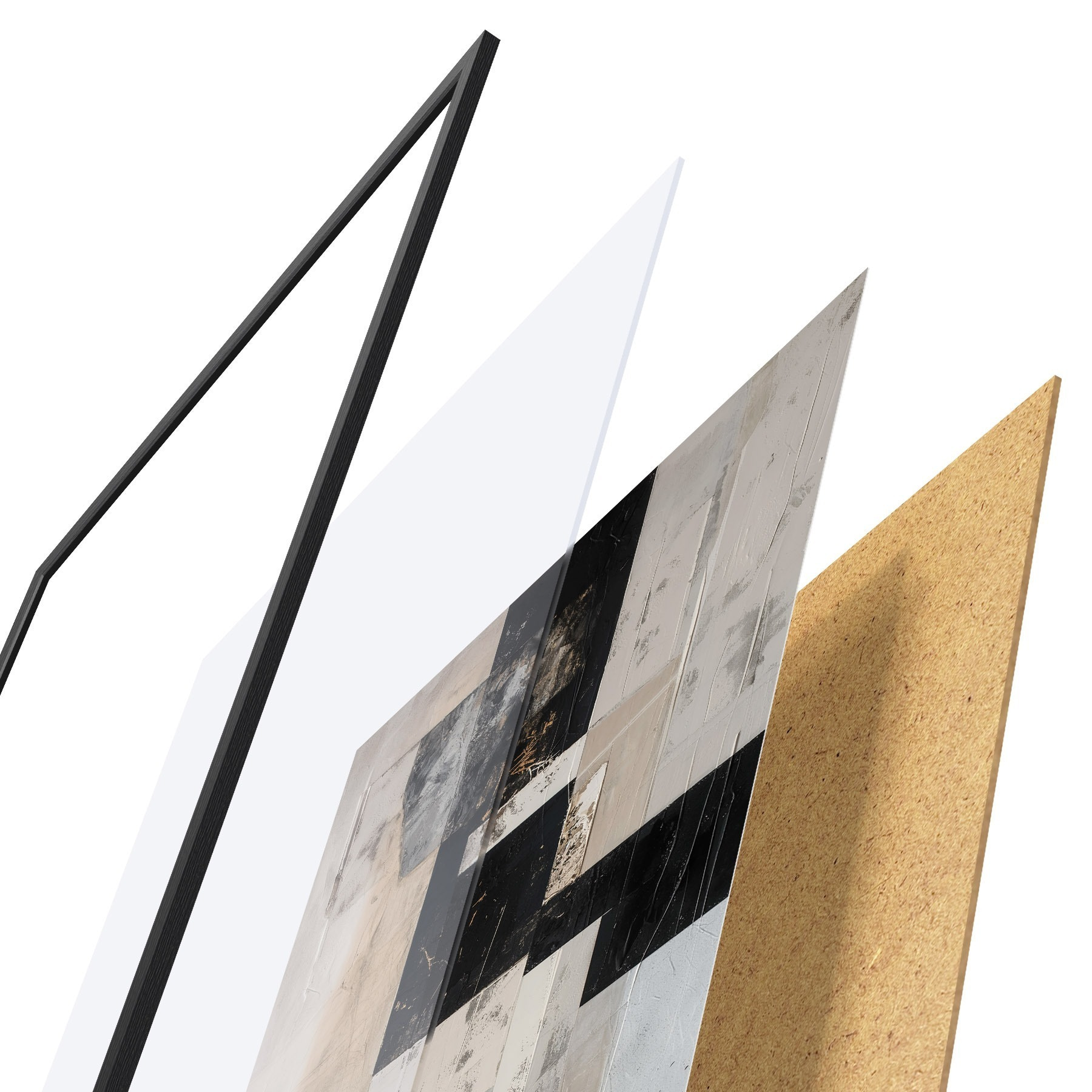 Plakatą sudaro rėmas, pleksiklas, atspausdintas vaizdas ir medžio drožlių plokštės pagrindas. Plakatą galima iš karto pakabinti ant sienos dėl kitoje pusėje esančių laikiklių.