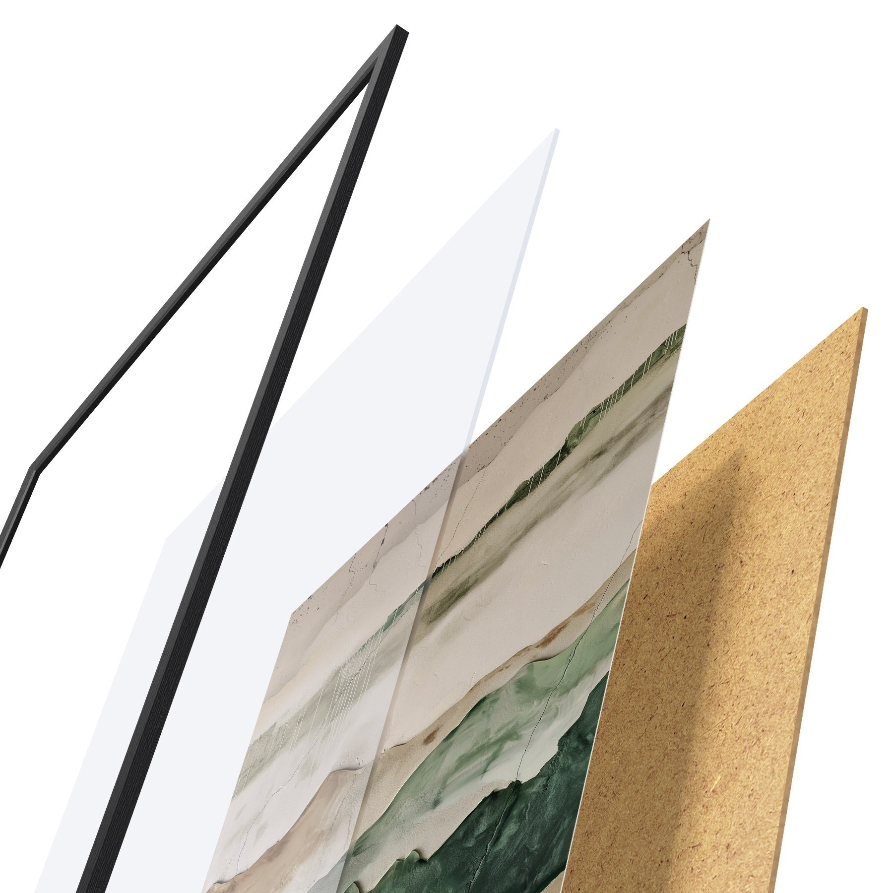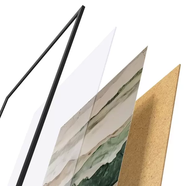 Plakatą sudaro rėmas, pleksiklas, atspausdintas vaizdas ir medžio drožlių plokštės pagrindas. Plakatą galima iš karto pakabinti ant sienos dėl kitoje pusėje esančių laikiklių.
