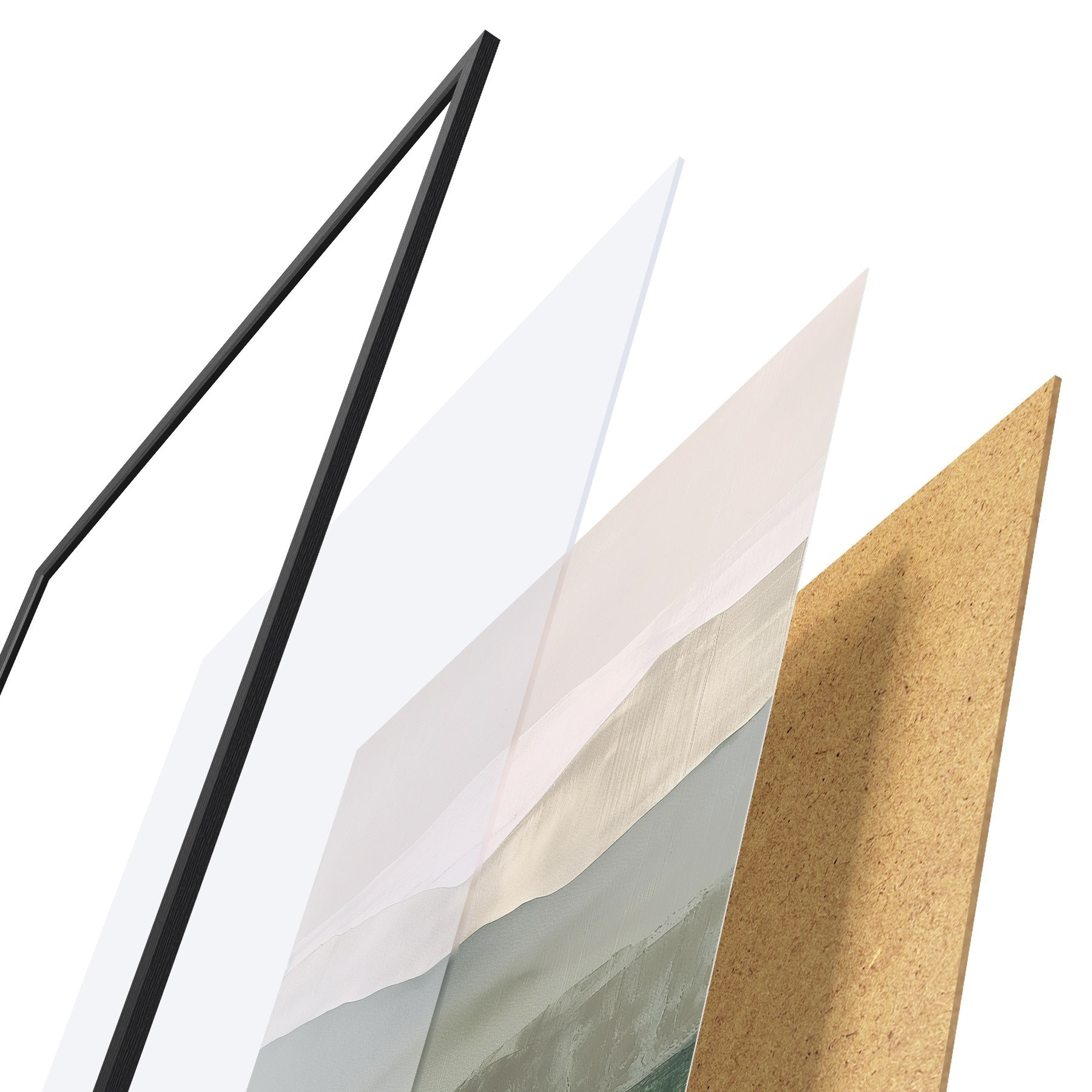 Plakatą sudaro rėmas, pleksiklas, atspausdintas vaizdas ir medžio drožlių plokštės pagrindas. Plakatą galima iš karto pakabinti ant sienos dėl kitoje pusėje esančių laikiklių.