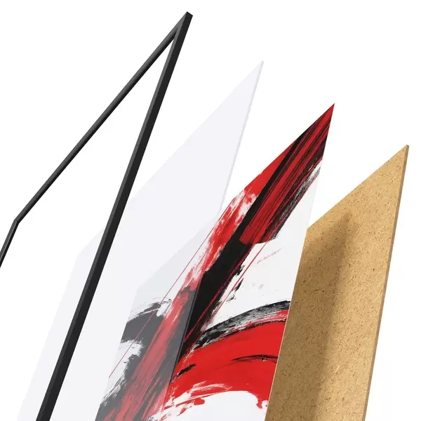 Plakatą sudaro rėmas, pleksiklas, atspausdintas vaizdas ir medžio drožlių plokštės pagrindas. Plakatą galima iš karto pakabinti ant sienos dėl kitoje pusėje esančių laikiklių.