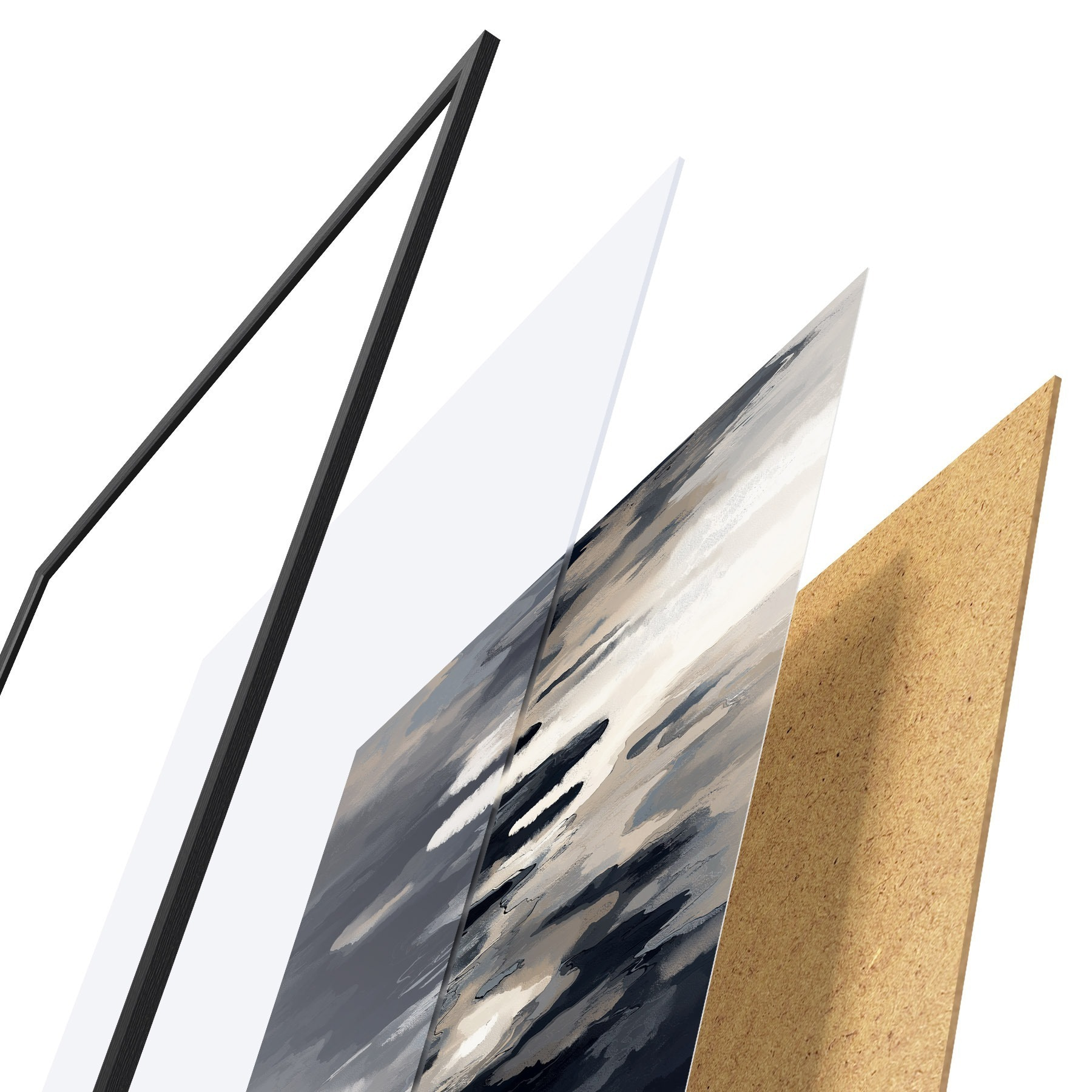 Plakatą sudaro rėmas, pleksiklas, atspausdintas vaizdas ir medžio drožlių plokštės pagrindas. Plakatą galima iš karto pakabinti ant sienos dėl kitoje pusėje esančių laikiklių.