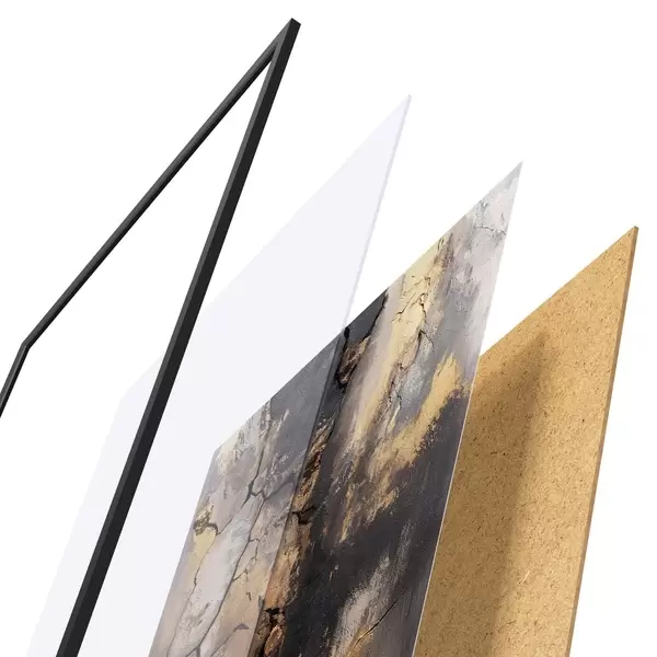 Plakatą sudaro rėmas, pleksiklas, atspausdintas vaizdas ir medžio drožlių plokštės pagrindas. Plakatą galima iš karto pakabinti ant sienos dėl kitoje pusėje esančių laikiklių.