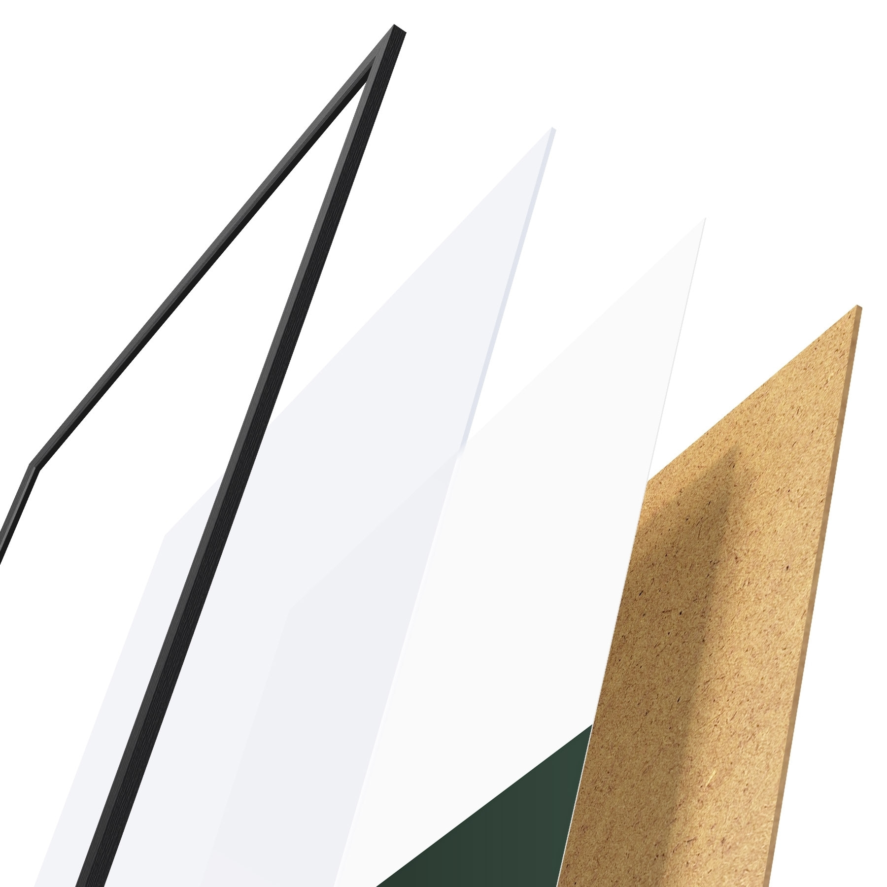 Plakatą sudaro rėmas, pleksiklas, atspausdintas vaizdas ir medžio drožlių plokštės pagrindas. Plakatą galima iš karto pakabinti ant sienos dėl kitoje pusėje esančių laikiklių.