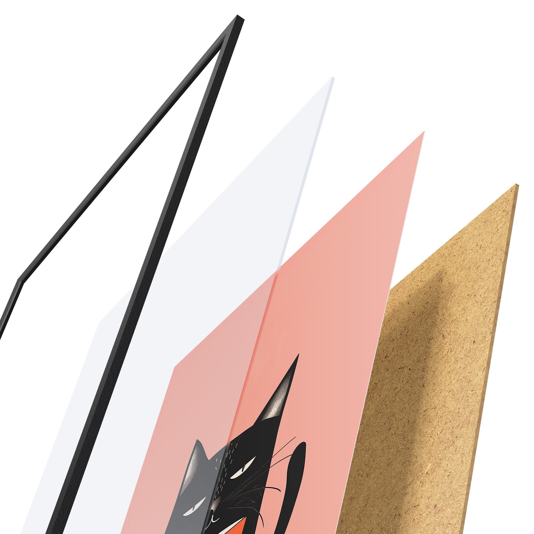 Plakatą sudaro rėmas, pleksiklas, atspausdintas vaizdas ir medžio drožlių plokštės pagrindas. Plakatą galima iš karto pakabinti ant sienos dėl kitoje pusėje esančių laikiklių.