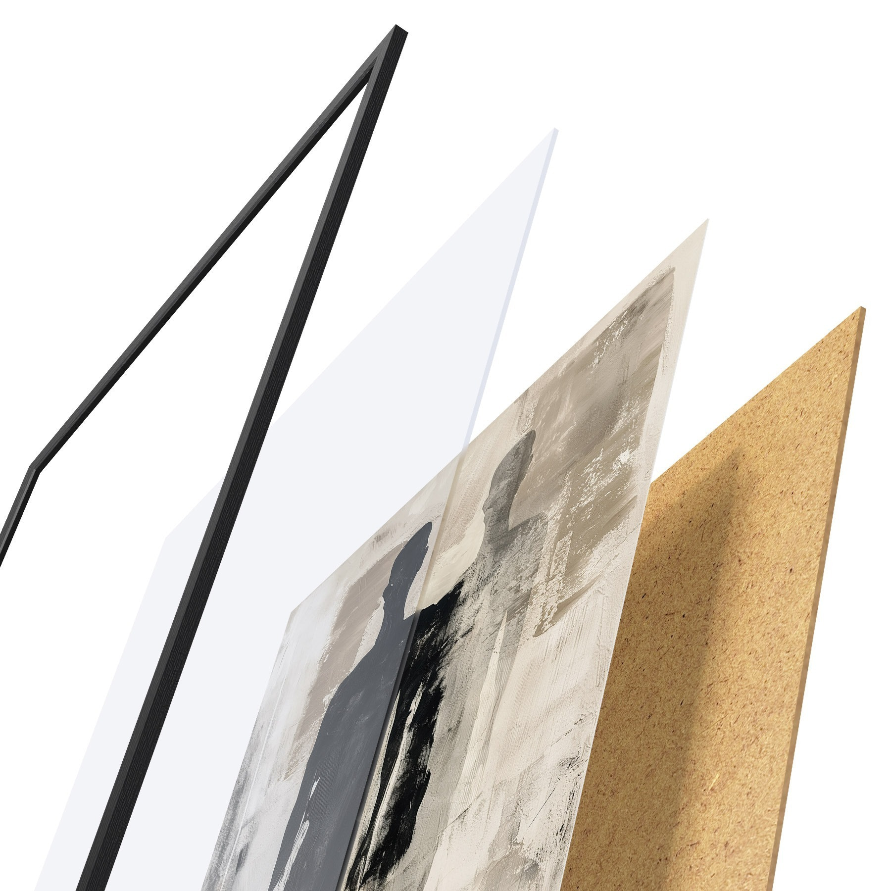 Plakatą sudaro rėmas, pleksiklas, atspausdintas vaizdas ir medžio drožlių plokštės pagrindas. Plakatą galima iš karto pakabinti ant sienos dėl kitoje pusėje esančių laikiklių.