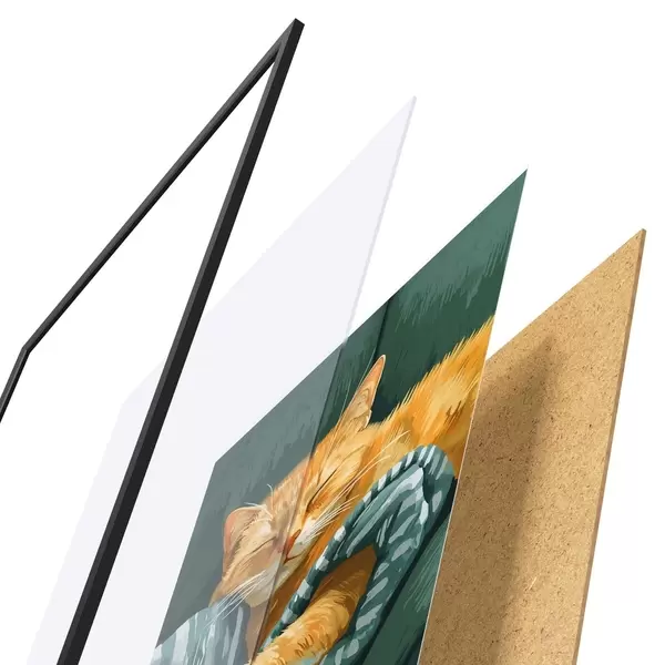 Plakatą sudaro rėmas, pleksiklas, atspausdintas vaizdas ir medžio drožlių plokštės pagrindas. Plakatą galima iš karto pakabinti ant sienos dėl kitoje pusėje esančių laikiklių.