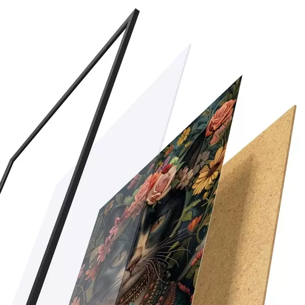 Plakatą sudaro rėmas, pleksiklas, atspausdintas vaizdas ir medžio drožlių plokštės pagrindas. Plakatą galima iš karto pakabinti ant sienos dėl kitoje pusėje esančių laikiklių.