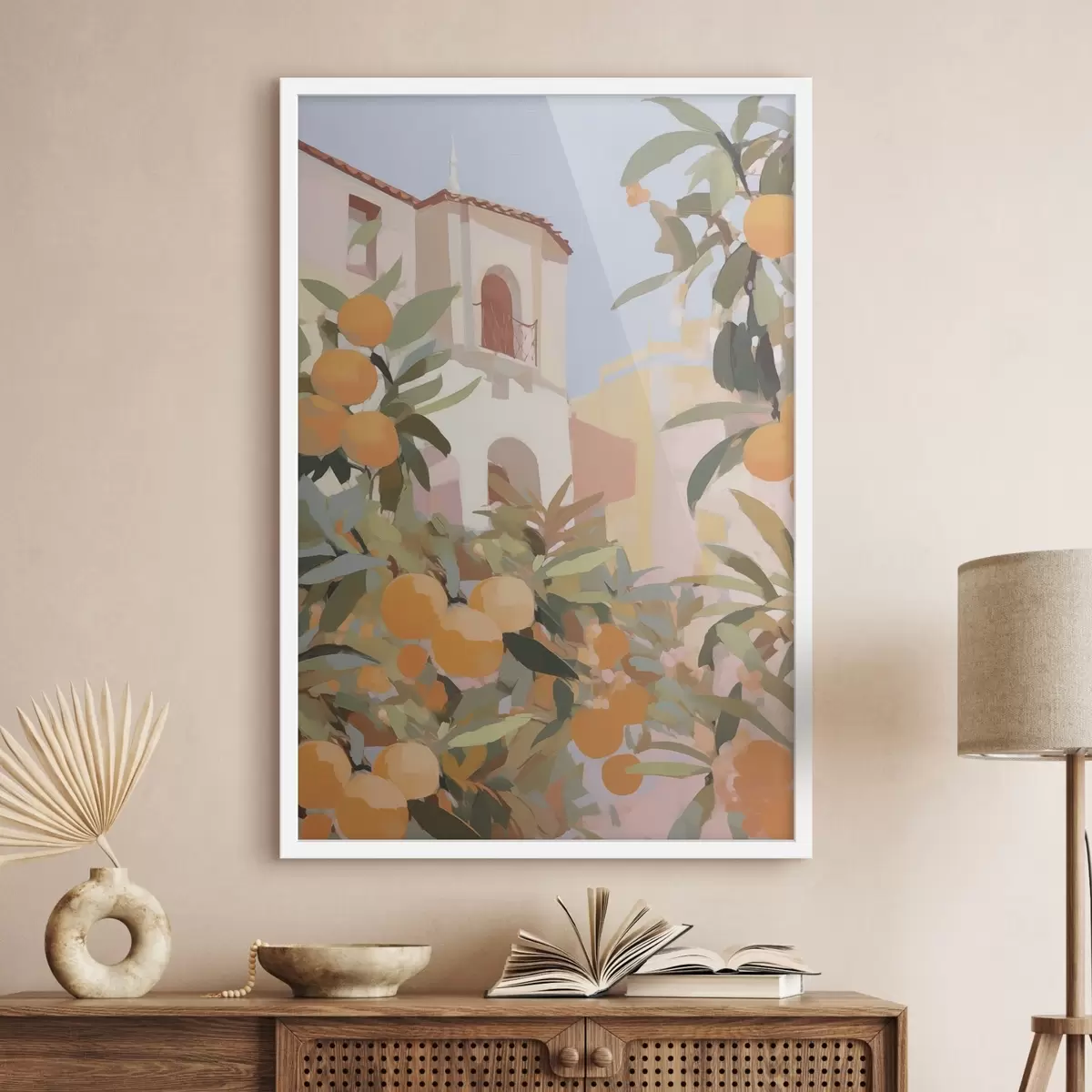 Plakatas Apelsinai ant šakos priešais namą f46060
