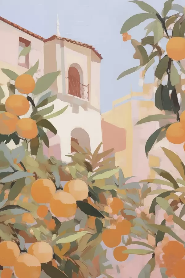 Plakatas Apelsinai ant šakos priešais namą f46060