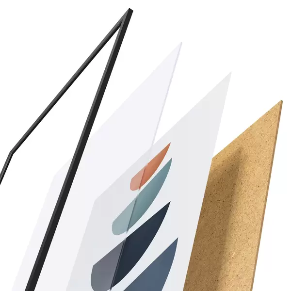 Plakatą sudaro rėmas, pleksiklas, atspausdintas vaizdas ir medžio drožlių plokštės pagrindas. Plakatą galima iš karto pakabinti ant sienos dėl kitoje pusėje esančių laikiklių.