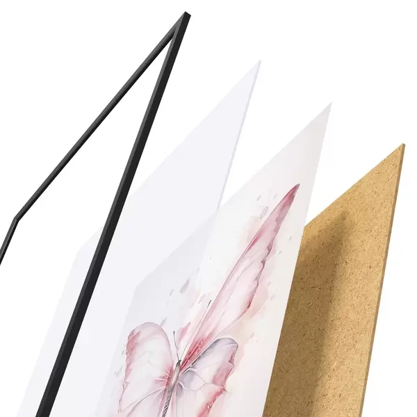 Plakatą sudaro rėmas, pleksiklas, atspausdintas vaizdas ir medžio drožlių plokštės pagrindas. Plakatą galima iš karto pakabinti ant sienos dėl kitoje pusėje esančių laikiklių.