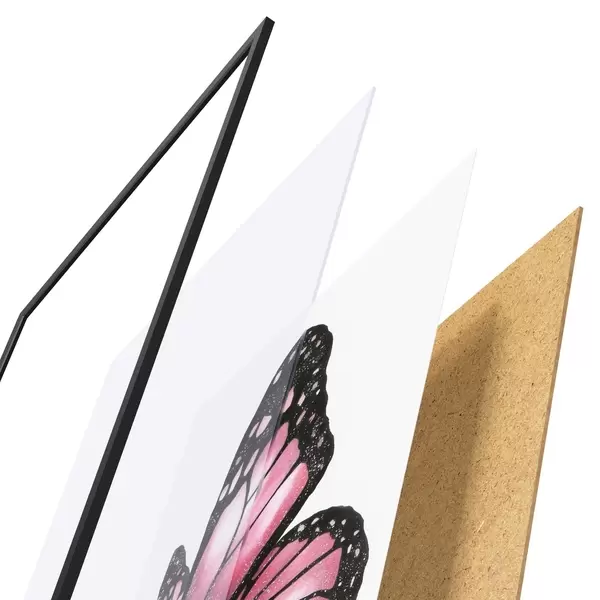 Plakatą sudaro rėmas, pleksiklas, atspausdintas vaizdas ir medžio drožlių plokštės pagrindas. Plakatą galima iš karto pakabinti ant sienos dėl kitoje pusėje esančių laikiklių.