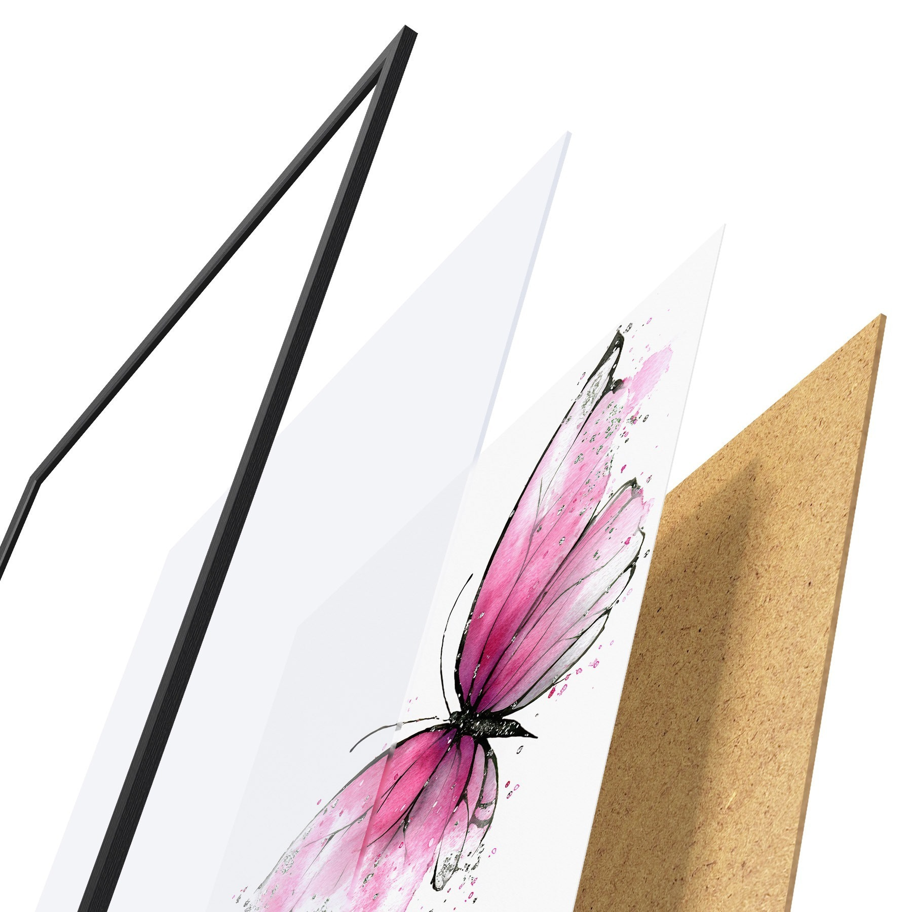 Plakatą sudaro rėmas, pleksiklas, atspausdintas vaizdas ir medžio drožlių plokštės pagrindas. Plakatą galima iš karto pakabinti ant sienos dėl kitoje pusėje esančių laikiklių.