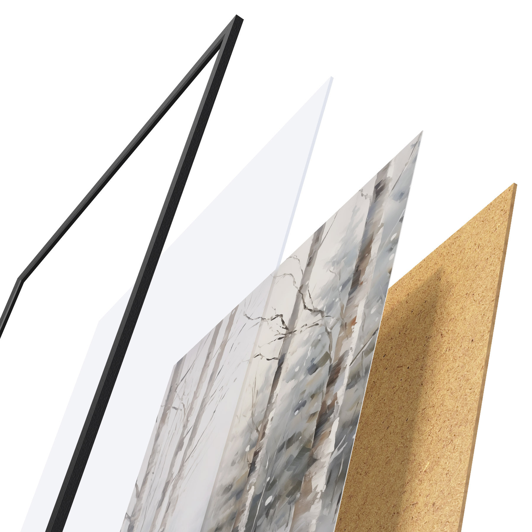 Plakatą sudaro rėmas, pleksiklas, atspausdintas vaizdas ir medžio drožlių plokštės pagrindas. Plakatą galima iš karto pakabinti ant sienos dėl kitoje pusėje esančių laikiklių.