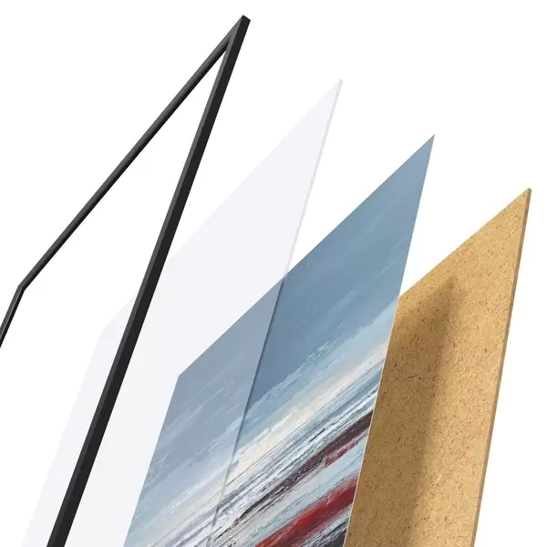 Plakatą sudaro rėmas, pleksiklas, atspausdintas vaizdas ir medžio drožlių plokštės pagrindas. Plakatą galima iš karto pakabinti ant sienos dėl kitoje pusėje esančių laikiklių.