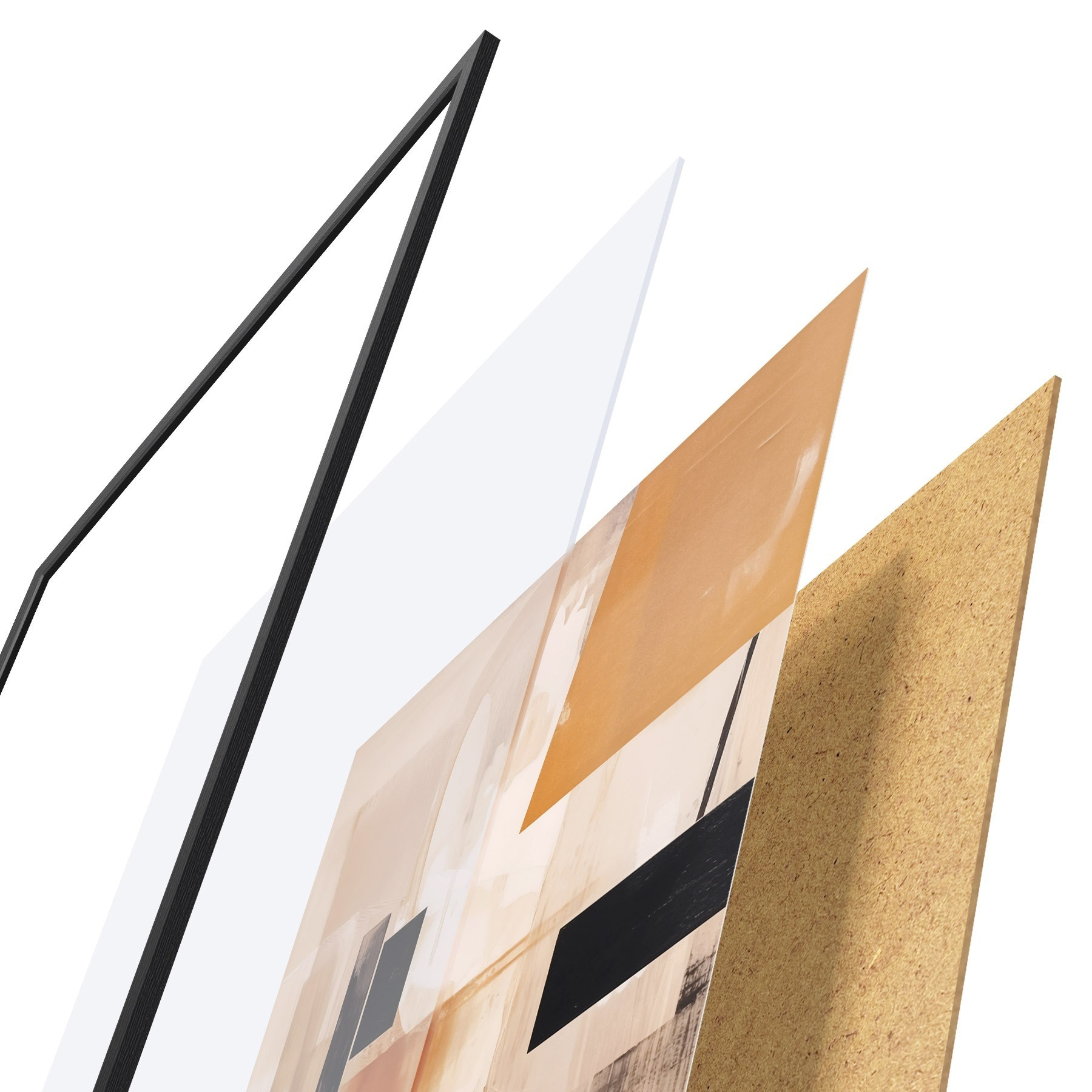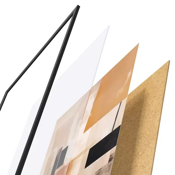 Plakatą sudaro rėmas, pleksiklas, atspausdintas vaizdas ir medžio drožlių plokštės pagrindas. Plakatą galima iš karto pakabinti ant sienos dėl kitoje pusėje esančių laikiklių.