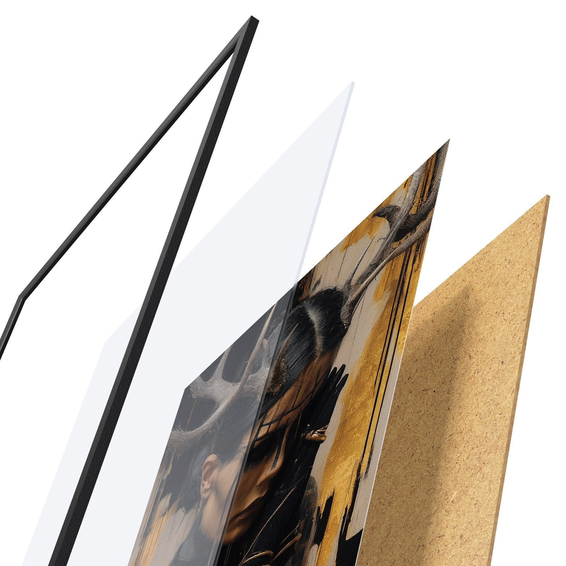 Plakatą sudaro rėmas, pleksiklas, atspausdintas vaizdas ir medžio drožlių plokštės pagrindas. Plakatą galima iš karto pakabinti ant sienos dėl kitoje pusėje esančių laikiklių.