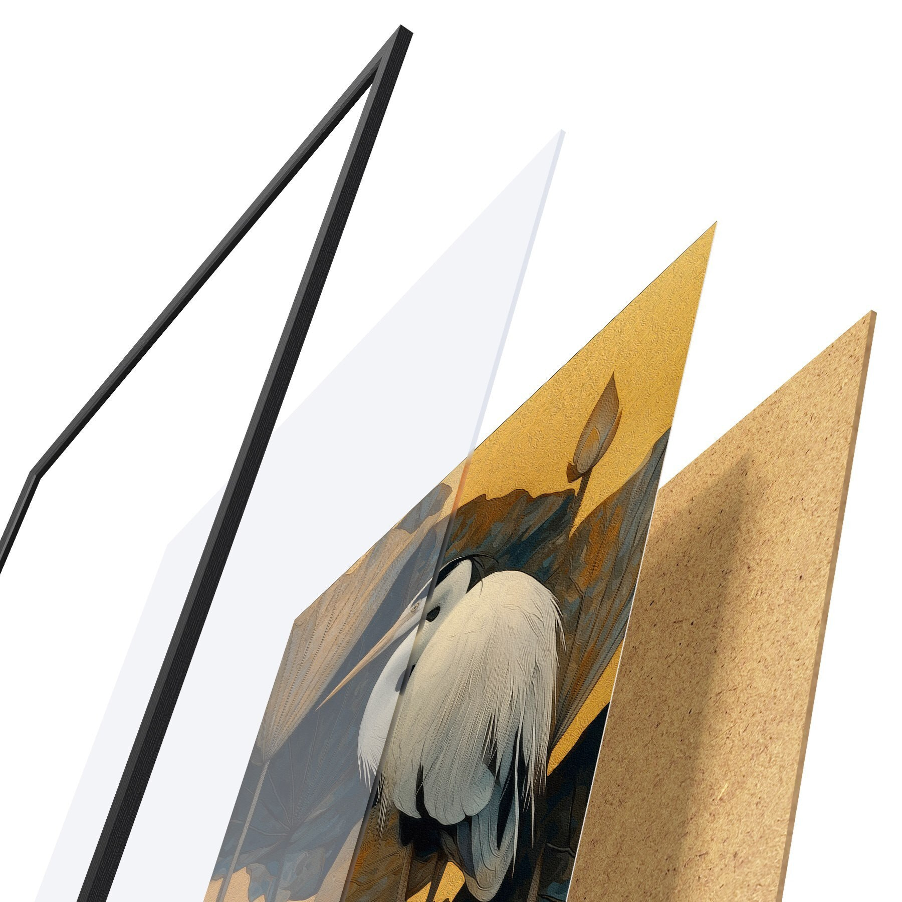 Plakatą sudaro rėmas, pleksiklas, atspausdintas vaizdas ir medžio drožlių plokštės pagrindas. Plakatą galima iš karto pakabinti ant sienos dėl kitoje pusėje esančių laikiklių.