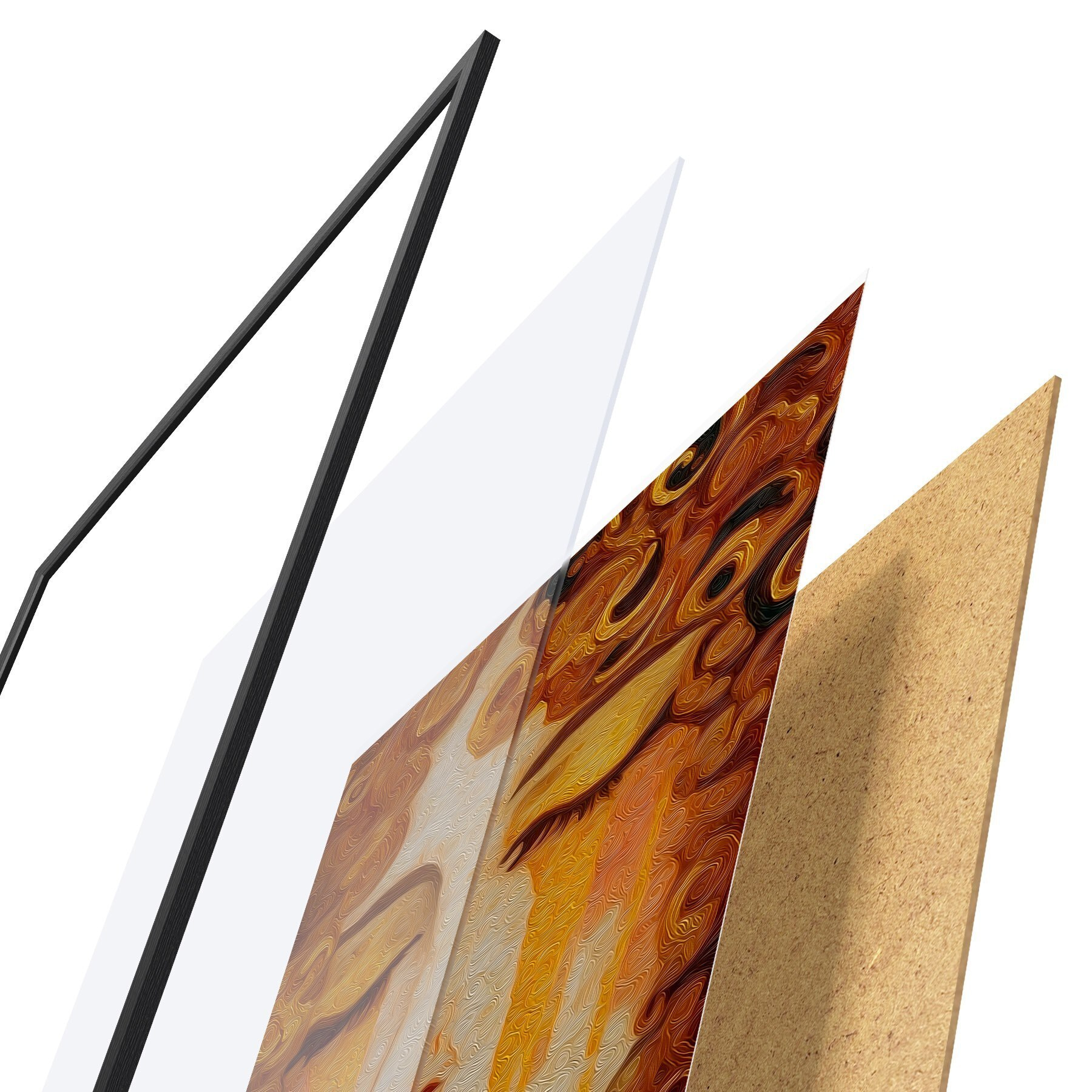 Plakatą sudaro rėmas, pleksiklas, atspausdintas vaizdas ir medžio drožlių plokštės pagrindas. Plakatą galima iš karto pakabinti ant sienos dėl kitoje pusėje esančių laikiklių.