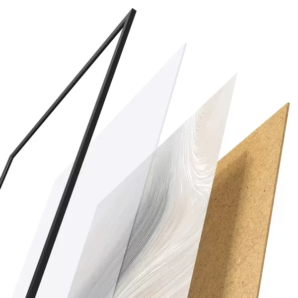 Plakatą sudaro rėmas, pleksiklas, atspausdintas vaizdas ir medžio drožlių plokštės pagrindas. Plakatą galima iš karto pakabinti ant sienos dėl kitoje pusėje esančių laikiklių.
