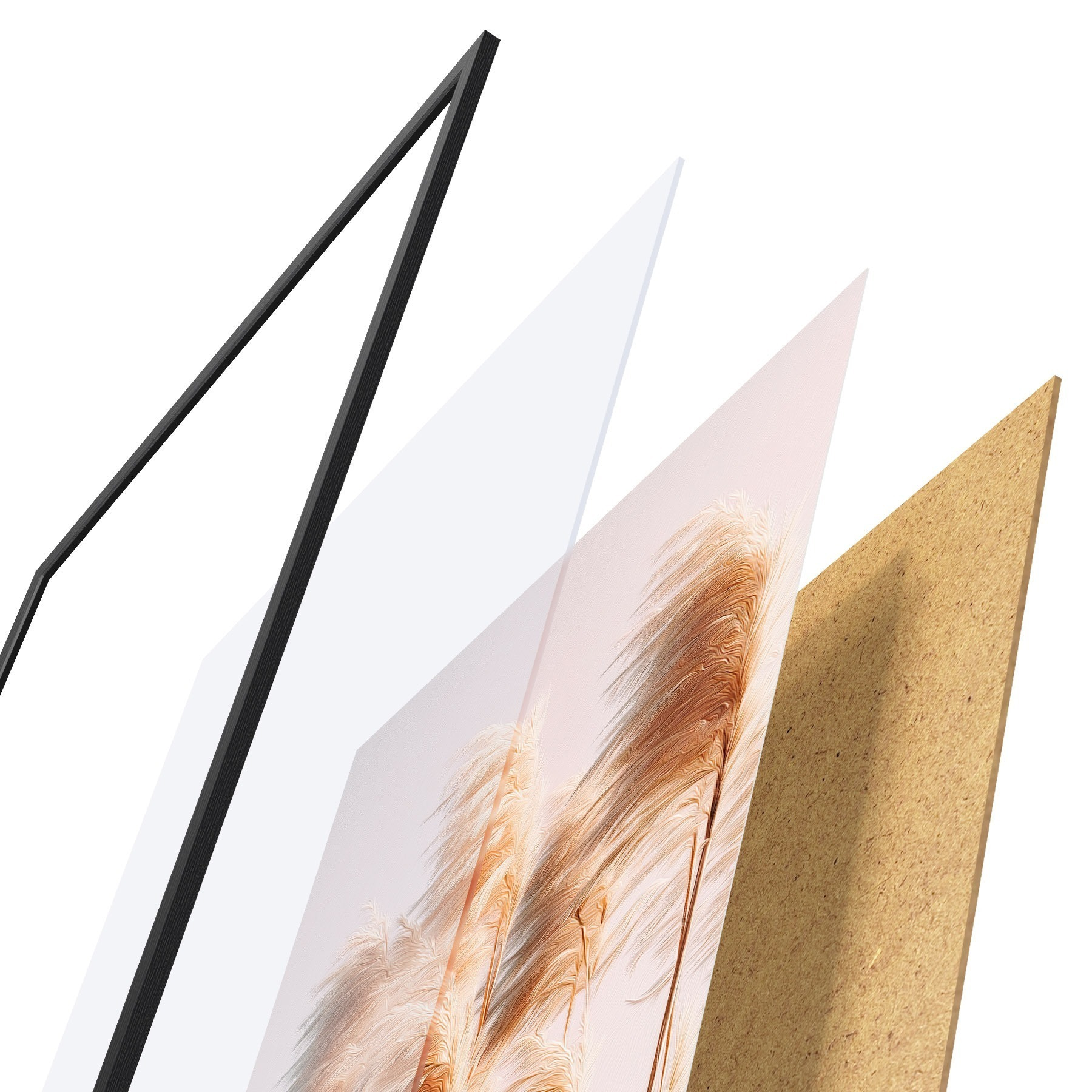 Plakatą sudaro rėmas, pleksiklas, atspausdintas vaizdas ir medžio drožlių plokštės pagrindas. Plakatą galima iš karto pakabinti ant sienos dėl kitoje pusėje esančių laikiklių.