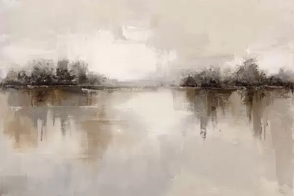 Plakatas Švelnus kraštovaizdis su ežeru šiltų smėlio-pilkų atspalvių Ne f46158