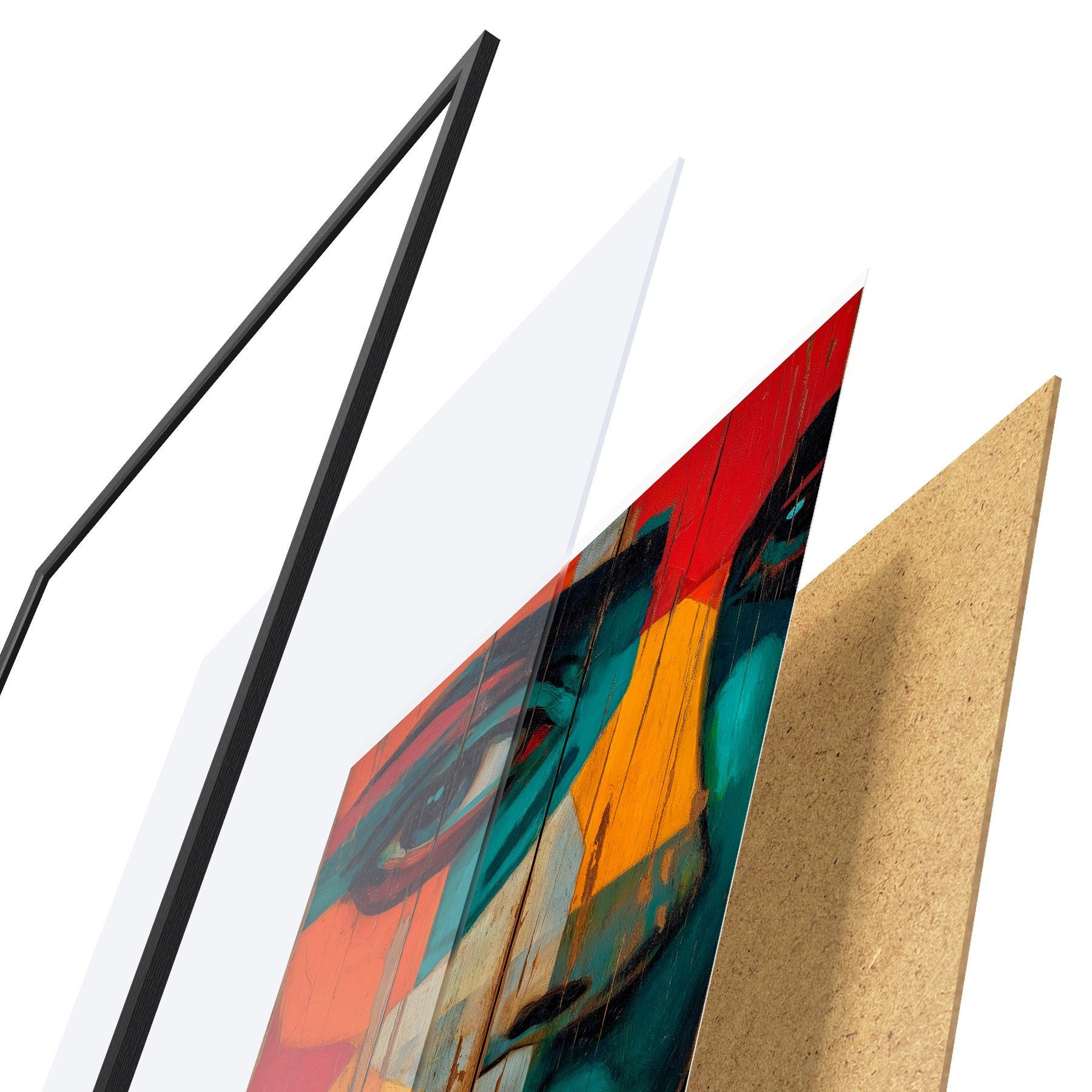 Plakatas Ryškus geometrinis veido portretas ant medinių lentų f46165