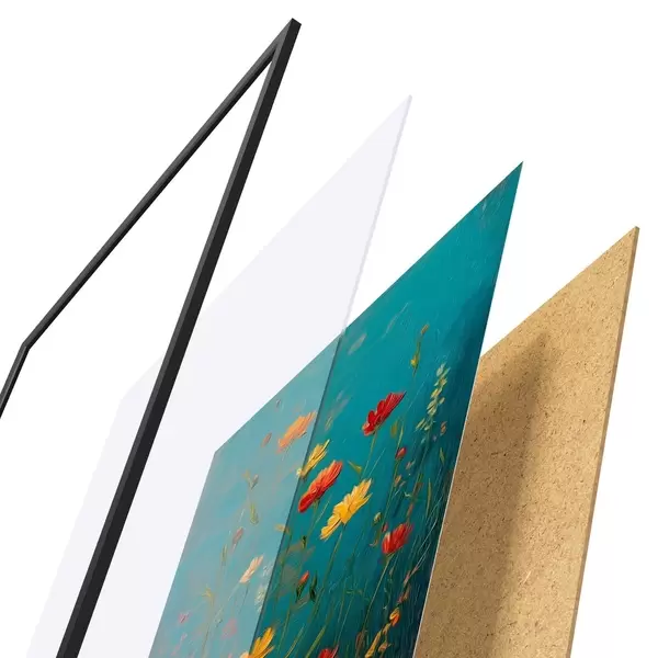 Plakatą sudaro rėmas, pleksiklas, atspausdintas vaizdas ir medžio drožlių plokštės pagrindas. Plakatą galima iš karto pakabinti ant sienos dėl kitoje pusėje esančių laikiklių.