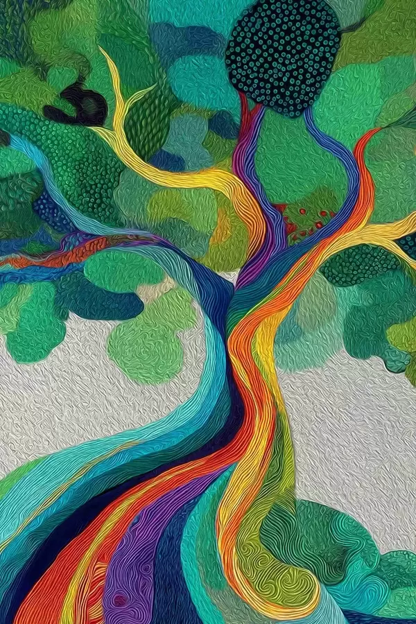 Plakatas Medis su vaivorykštės spalvos šakomis ant žalios fono Ne f46173