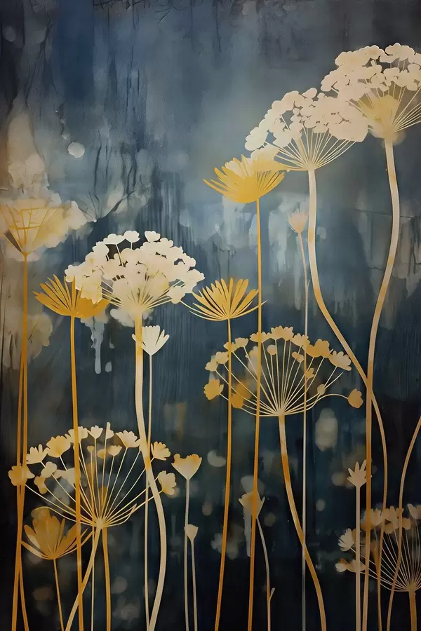 Plakatas Stilizuoti gėlės su plonais stiebais ant tamsaus fono f46188