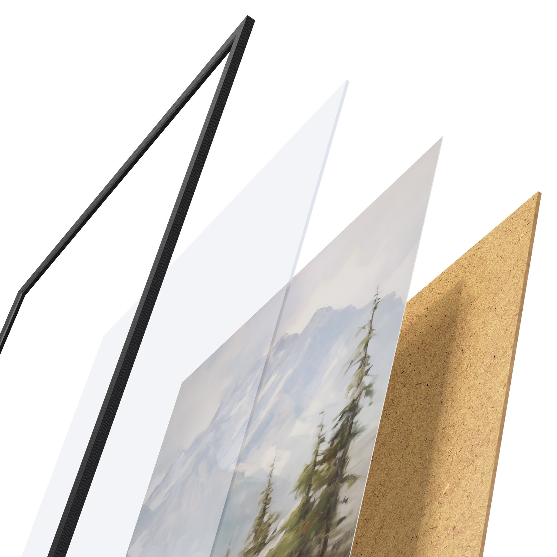 Plakatą sudaro rėmas, pleksiklas, atspausdintas vaizdas ir medžio drožlių plokštės pagrindas. Plakatą galima iš karto pakabinti ant sienos dėl kitoje pusėje esančių laikiklių.