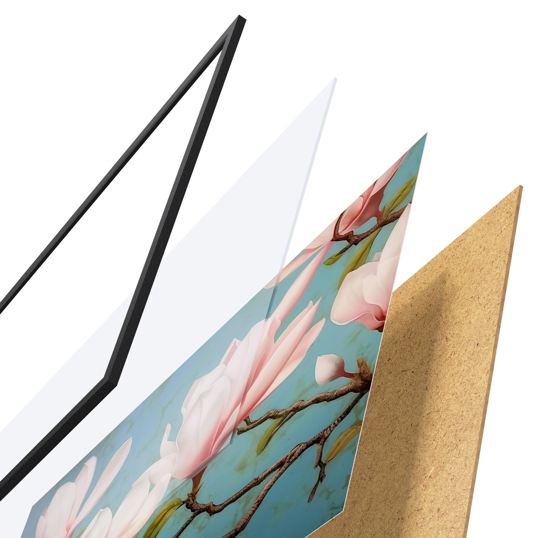 Plakatą sudaro rėmas, pleksiklas, atspausdintas vaizdas ir medžio drožlių plokštės pagrindas. Plakatą galima iš karto pakabinti ant sienos dėl kitoje pusėje esančių laikiklių.