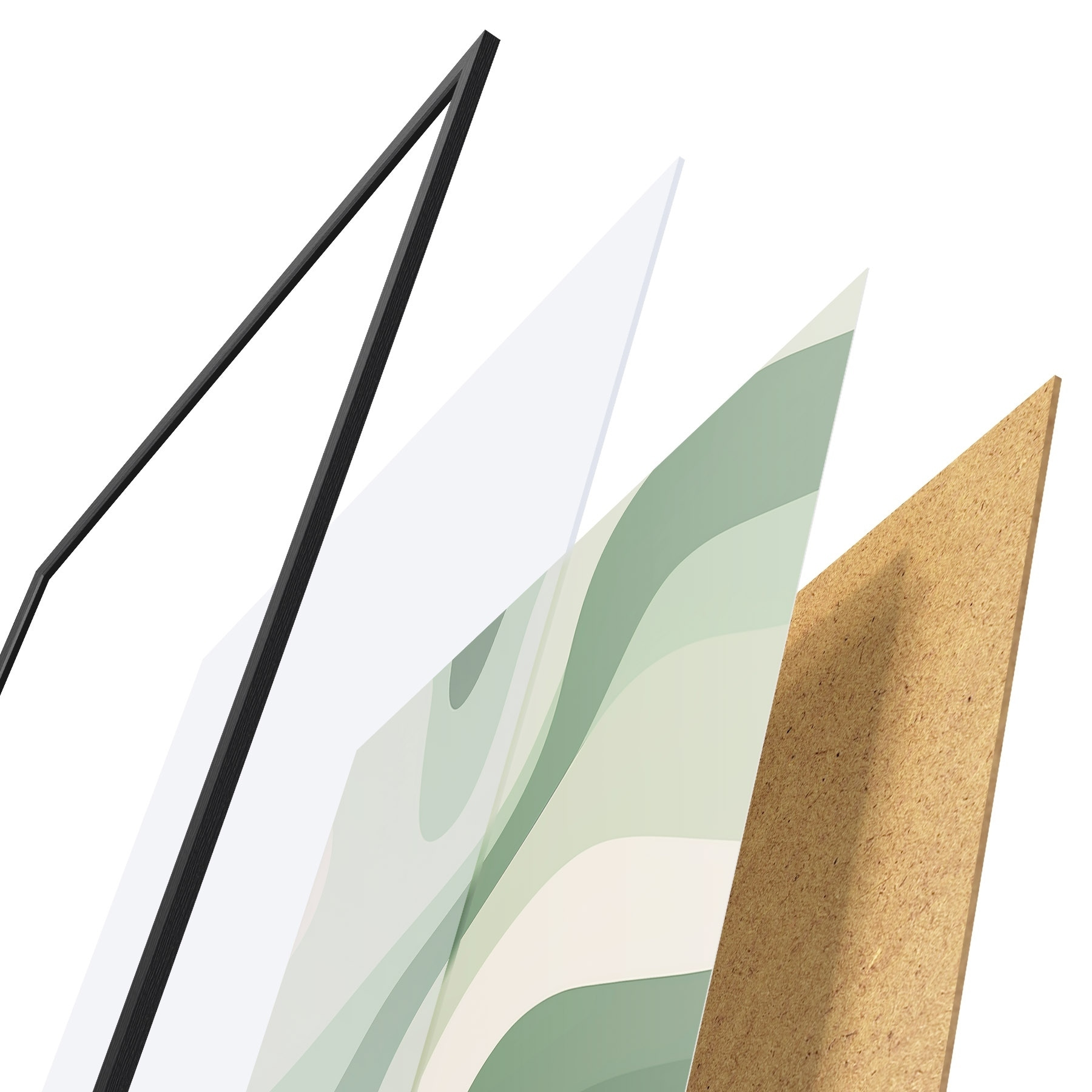Plakatą sudaro rėmas, pleksiklas, atspausdintas vaizdas ir medžio drožlių plokštės pagrindas. Plakatą galima iš karto pakabinti ant sienos dėl kitoje pusėje esančių laikiklių.