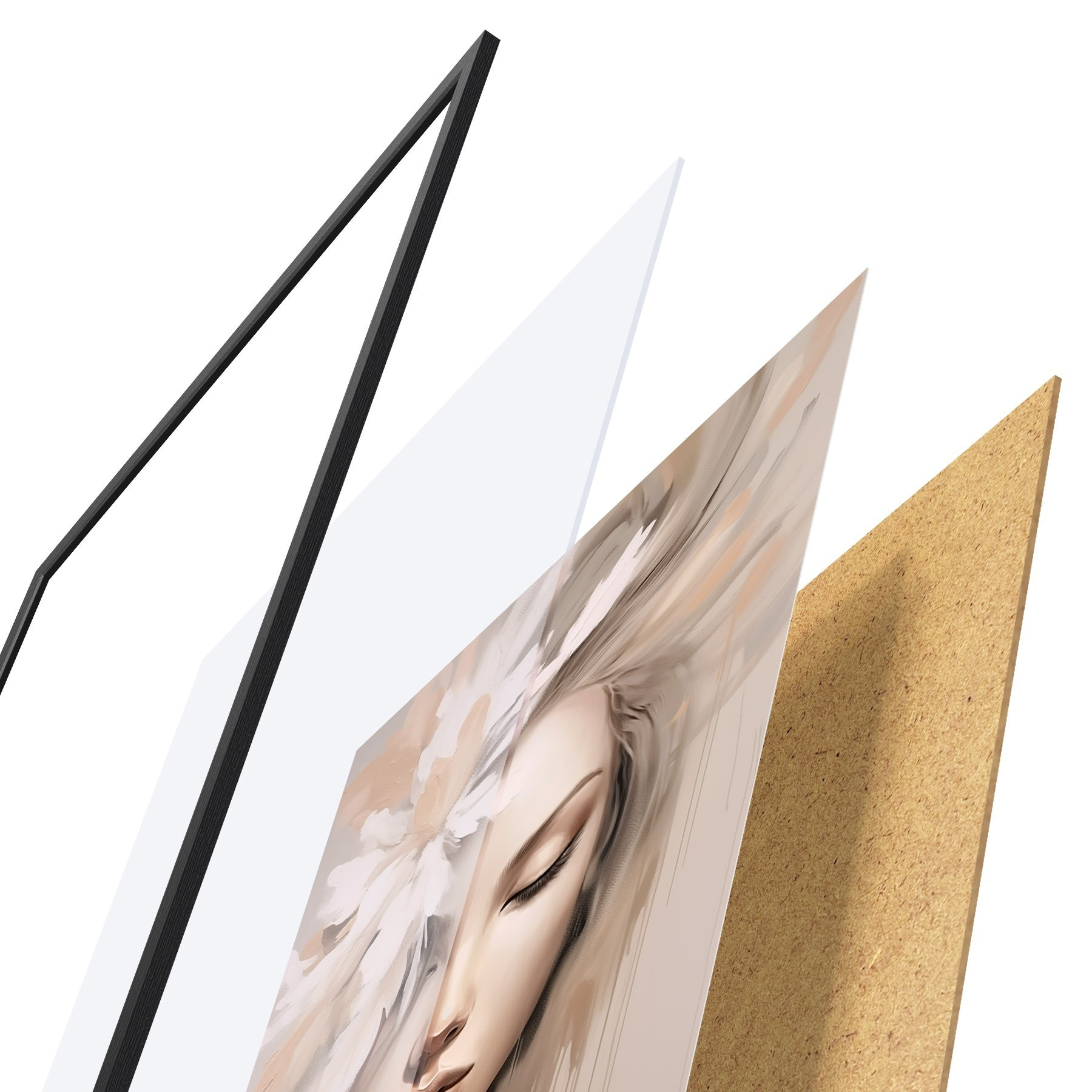Plakatą sudaro rėmas, pleksiklas, atspausdintas vaizdas ir medžio drožlių plokštės pagrindas. Plakatą galima iš karto pakabinti ant sienos dėl kitoje pusėje esančių laikiklių.