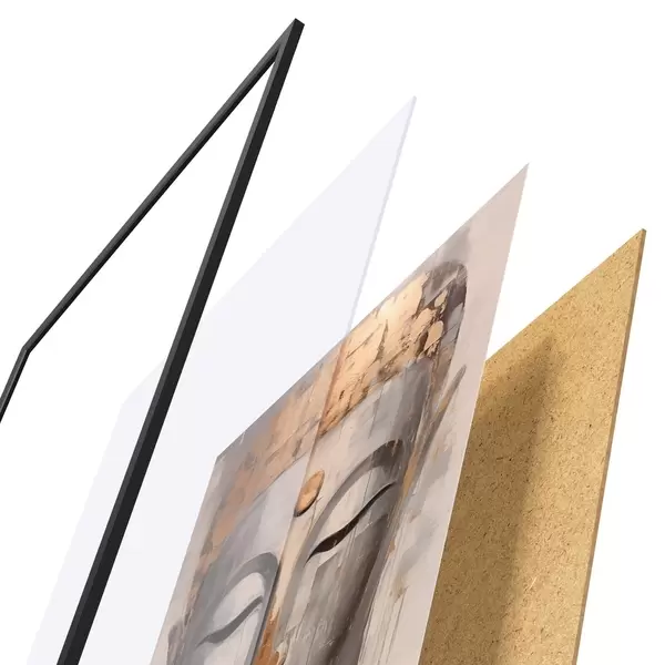 Plakatą sudaro rėmas, pleksiklas, atspausdintas vaizdas ir medžio drožlių plokštės pagrindas. Plakatą galima iš karto pakabinti ant sienos dėl kitoje pusėje esančių laikiklių.