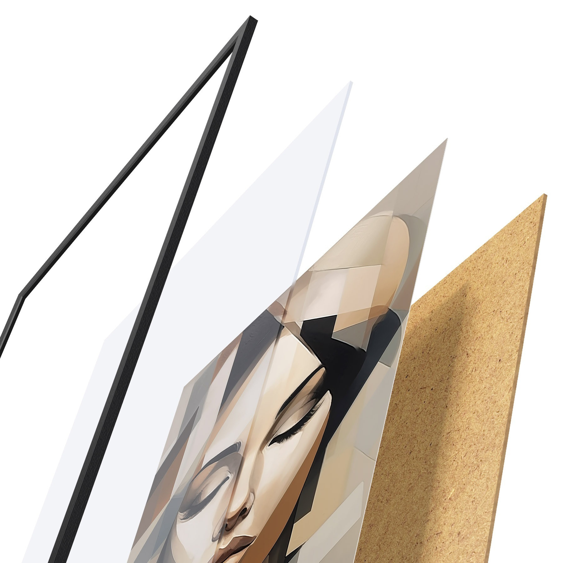 Plakatą sudaro rėmas, pleksiklas, atspausdintas vaizdas ir medžio drožlių plokštės pagrindas. Plakatą galima iš karto pakabinti ant sienos dėl kitoje pusėje esančių laikiklių.