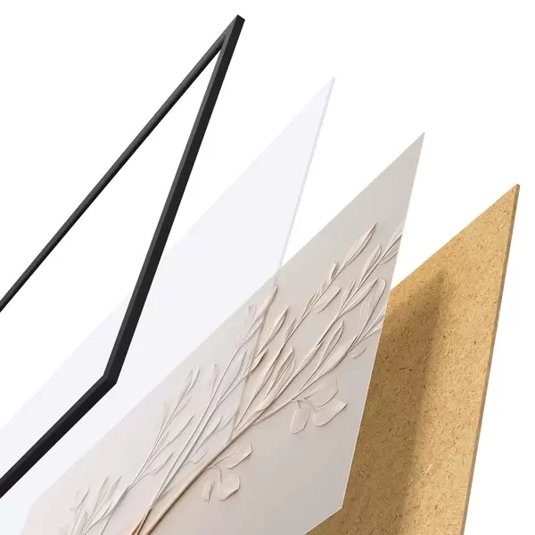 Plakatą sudaro rėmas, pleksiklas, atspausdintas vaizdas ir medžio drožlių plokštės pagrindas. Plakatą galima iš karto pakabinti ant sienos dėl kitoje pusėje esančių laikiklių.