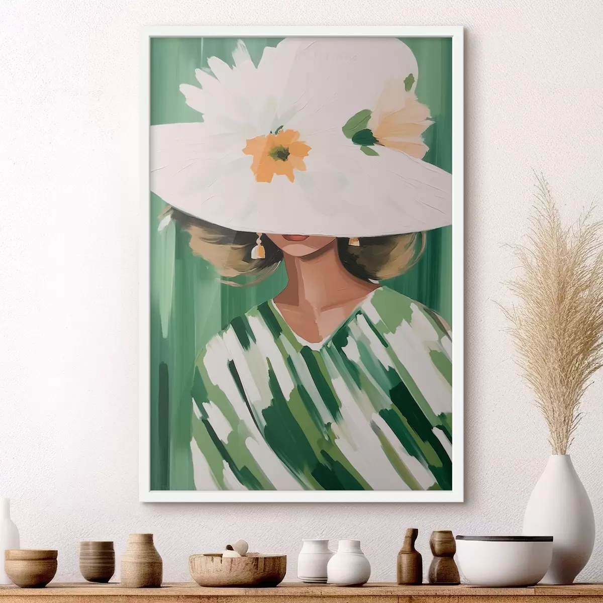 Plakatas Moteris su skrybėle ir gėlėmis f46240