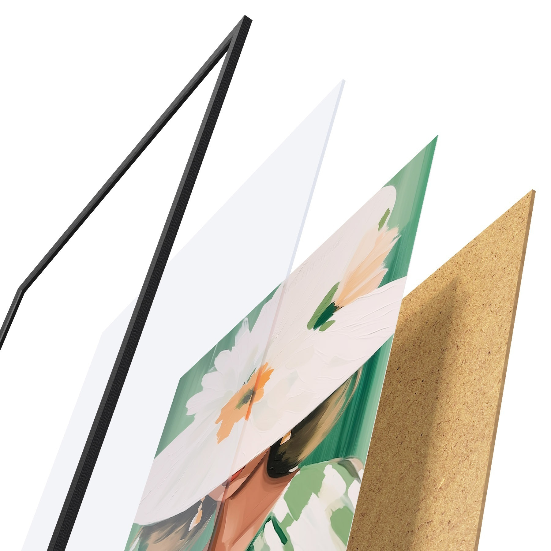 Plakatą sudaro rėmas, pleksiklas, atspausdintas vaizdas ir medžio drožlių plokštės pagrindas. Plakatą galima iš karto pakabinti ant sienos dėl kitoje pusėje esančių laikiklių.
