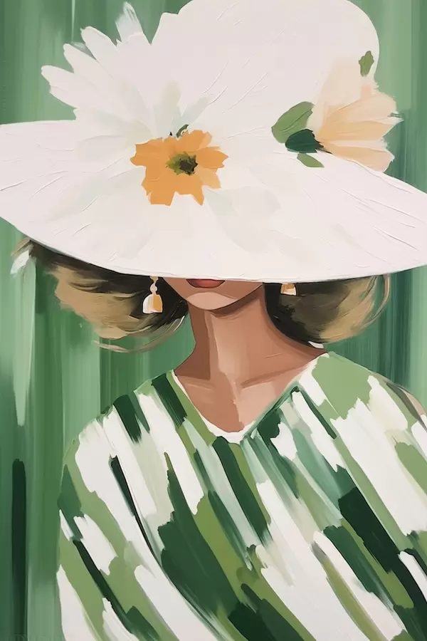 Plakatas Moteris su skrybėle ir gėlėmis f46240
