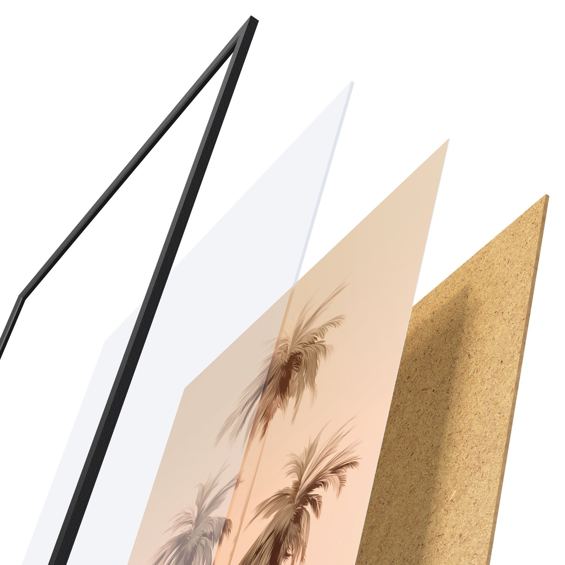 Plakatą sudaro rėmas, pleksiklas, atspausdintas vaizdas ir medžio drožlių plokštės pagrindas. Plakatą galima iš karto pakabinti ant sienos dėl kitoje pusėje esančių laikiklių.