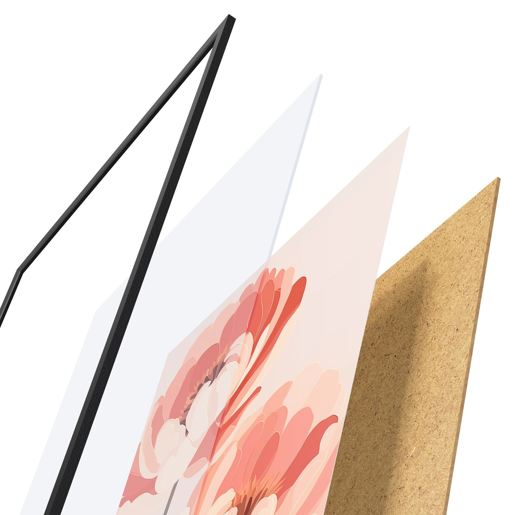 Plakatą sudaro rėmas, pleksiklas, atspausdintas vaizdas ir medžio drožlių plokštės pagrindas. Plakatą galima iš karto pakabinti ant sienos dėl kitoje pusėje esančių laikiklių.