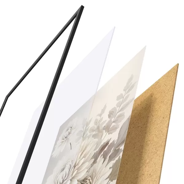 Plakatą sudaro rėmas, pleksiklas, atspausdintas vaizdas ir medžio drožlių plokštės pagrindas. Plakatą galima iš karto pakabinti ant sienos dėl kitoje pusėje esančių laikiklių.