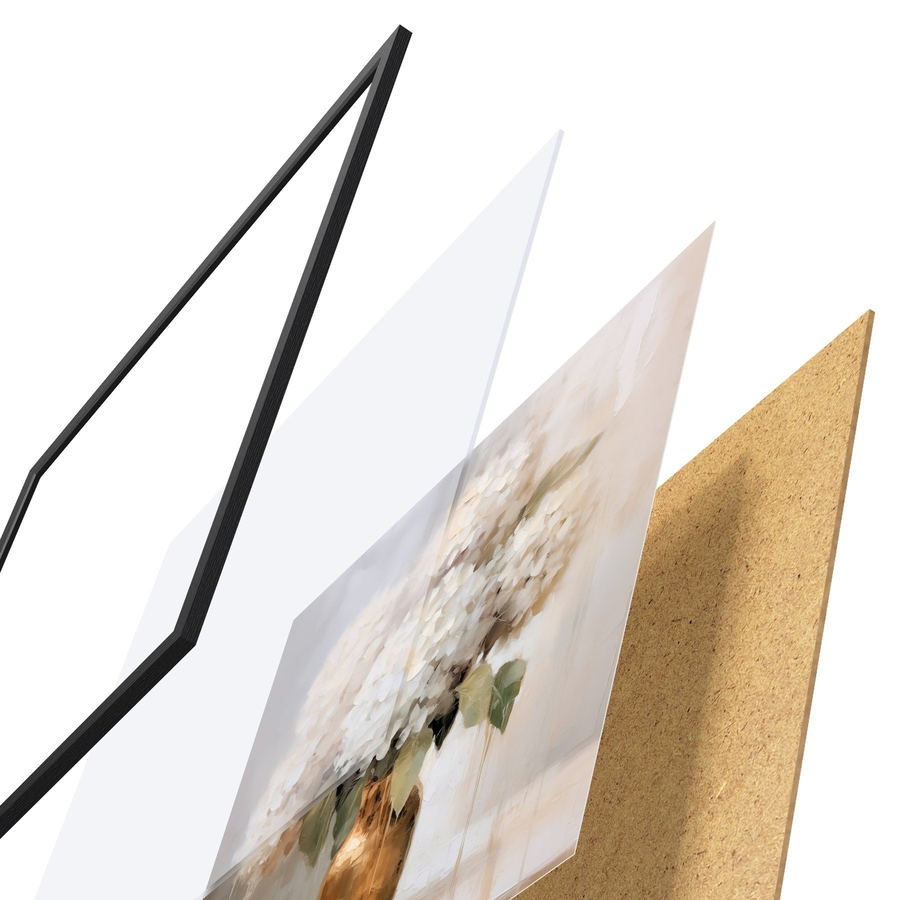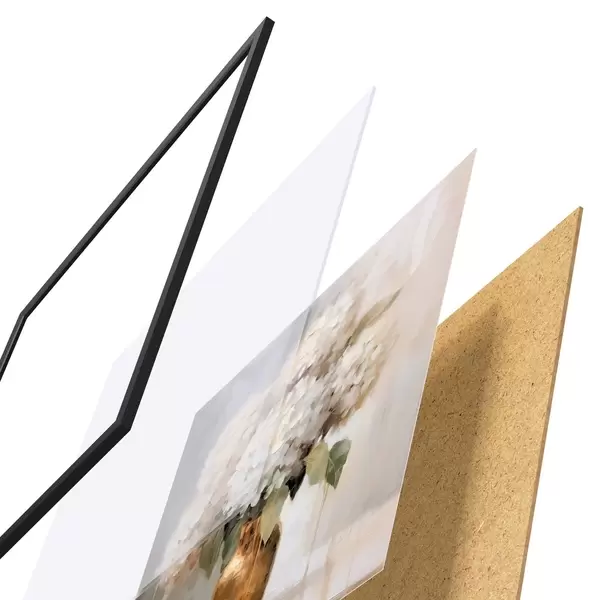 Plakatą sudaro rėmas, pleksiklas, atspausdintas vaizdas ir medžio drožlių plokštės pagrindas. Plakatą galima iš karto pakabinti ant sienos dėl kitoje pusėje esančių laikiklių.