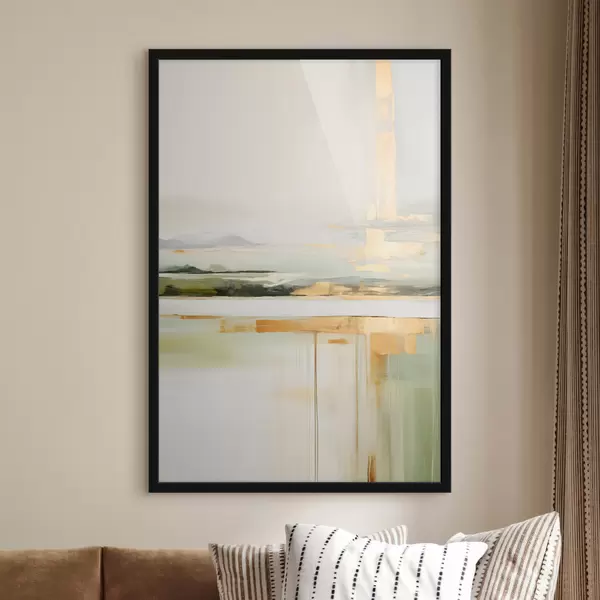 Plakatas Abstraktus peizažas su geltonais akcentais, minimalistinė žemės, vandens ir dangaus kompozicija, su prislopintomis spalvomis. Ne f46268